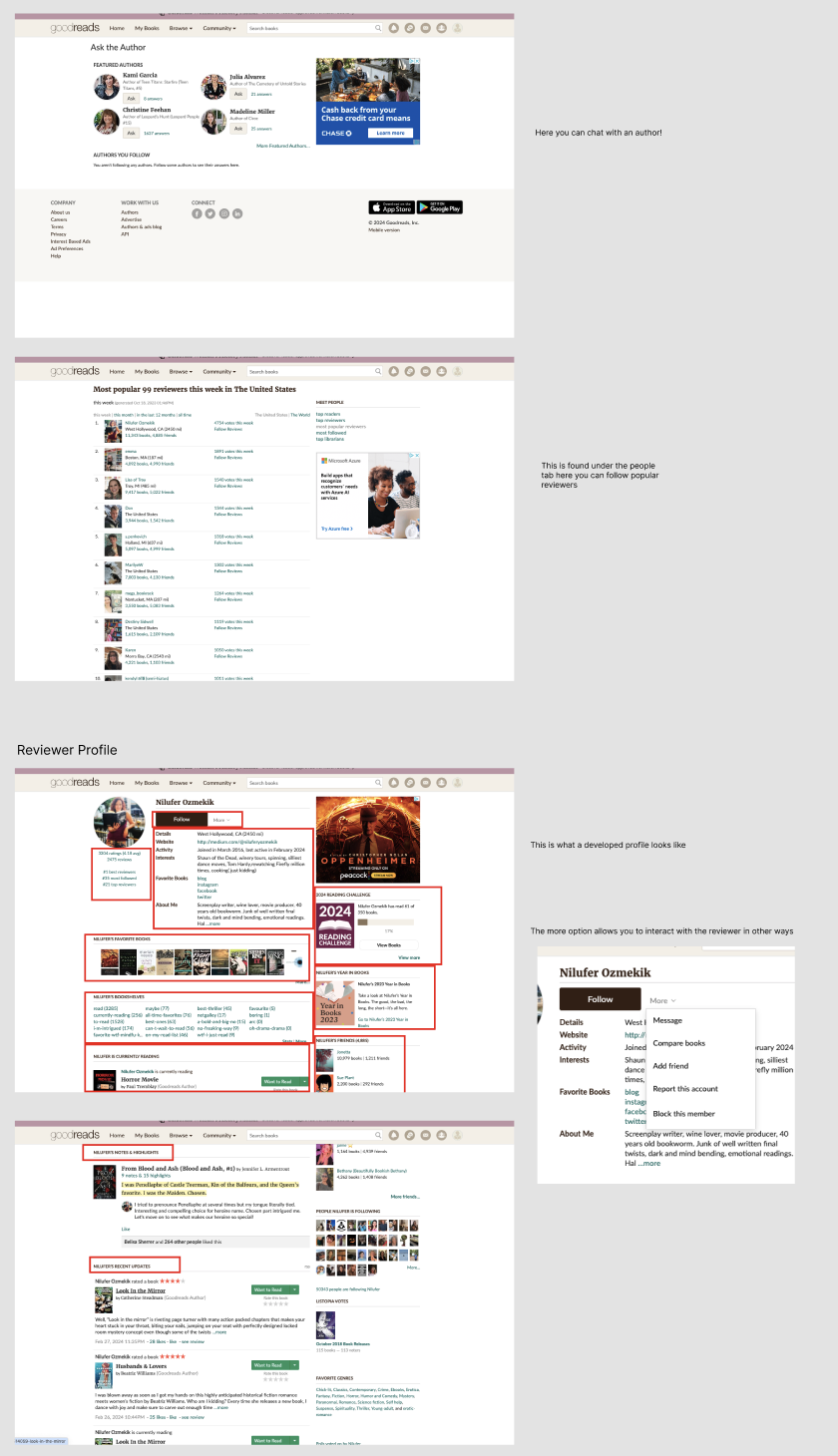 Your goal is to discover community reads . Now you’re gonna look for your top friend and check out her profile. You’ll be able to see what she’s reading, See what group she’s in what she has recently read. Look at all of her book list as well as her Reviews.